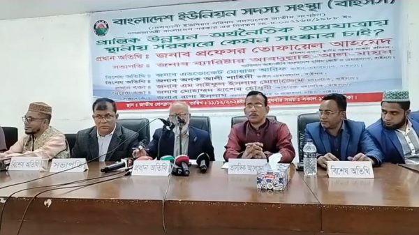 নিজস্ব প্রতিবেদকঃ নতুন আঙ্গিকে বাংলাদেশ গড়ার লক্ষ্যে বাংলাদেশ ইউনিয়ন সদস্য সংস্থা (বাইসস) এর উদ্দোগে আজ বৃহস্পতিবার (১২ ডিসেম্বর) সকাল ১১ টায় রাজধানীর জাতীয় প্রেসক্লাবে “প্রান্তিক উন্নয়ন-অর্থনৈতিক অগ্রযাত্রায় স্থানীয় সরকারের কেমন