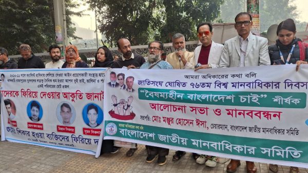 নিজস্ব প্রতিবেদকঃ ৭ ডিসেম্বর ২০২৪, শনিবার বিকাল ৩ টায় জাতীয় প্রেসক্লাবের সামনে বাংলাদেশ ভূমিহীন আন্দোলনের উদ্যোগে “কৃষি ও ভূমি সংস্কার কমিশন গঠনের দাবিতে মানববন্ধন” অনুষ্ঠিত হয়। সভাপতির বক্তব্যে বাংলাদেশ ভূমিহীন