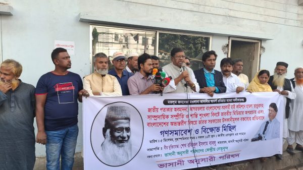 নিজস্ব প্রতিবেদকঃ ৩ ডিসেম্বর বিকাল ৩ টায় জাতীয় প্রেসক্লাবের সামনে থেকে আধিপত্য প্রতিরোধ আন্দোলনের উদ্যোগে সিলেট সীমান্তে উগ্রপন্থী ভারতীয়দের অনুপ্রবেশ আগরতলায় দূতাবাসে হামলার প্রতিবাদ ও রাষ্ট্রবিরোধী ষড়যন্ত্রকারী সন্ত্রাসী সংগঠন ইসকন