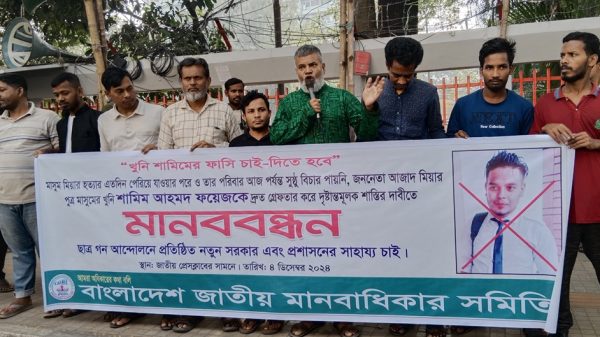 নিজস্ব প্রতিবেদকঃ বাংলাদেশ জাতীয় মানবাধিকার সমিতির চেয়ারম্যান মোঃ মঞ্জুর হোসেন ঈসা বলেন, ২০১৩ সালের ৪ ডিসেম্বর সাবেক বৃহত্তর তেজগাঁও থানার ৩৮নং ওয়ার্ড বর্তমান ২৫নং ওয়ার্ডের বিএনপির সাধারণ সম্পাদক সাজেদুল ইসলাম