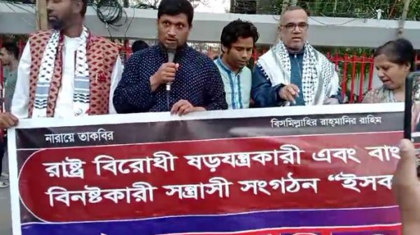 নিজস্ব প্রতিবেদকঃ আধিপত্য প্রতিরোধ আন্দোলন, মুভমেন্ট ফর প্যালেস্টাইন বাংলাদেশ ও বাংলাদেশ জনজোটের যৌথ উদ্যোগে ২ ডিসেম্বর ২০২৪ মঙ্গলবার বিকাল ৩ টায় জাতীয় প্রেসক্লাবের সামনে রাষ্ট্রবিরোধী ষড়যন্ত্রকারী সন্ত্রাসী সংগঠন ইসকন নিষিদ্ধের
