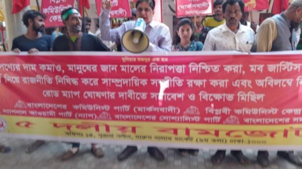 নিজস্ব প্রতিবেদকঃ দ্রব্যমূল্য কমানো মানুষের জানমালের নিরাপত্তা নিশ্চিত করা, মব জাস্টিস বন্ধ করা ধর্ম নিয়ে রাজনীতি নিষিদ্ধ করে সাম্প্রদায়িক সম্প্রীতি রক্ষা করে এবং নির্বাচনী রোডম্যাপ ঘোষণার দাবিতে ৫ দলীয় বাম