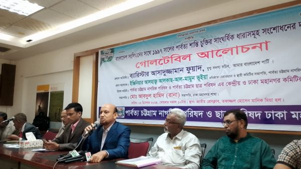নিজস্ব প্রতিবেদকঃ পার্বত্য চট্টগ্রাম নাগরিক পরিষদ ঢাকা মহানগর শাখার উদ্যোগে ০২ ডিসেম্বর ২০২৪, সোমবার সকাল ১০টায়, জাতীয় প্রেসক্লাবের ২য় তলায় তোফাজ্জল হোসেন মানিক মিয়া হলে “বাংলাদেশ সংবিধানের সাথে ১৯৯৭ সালের