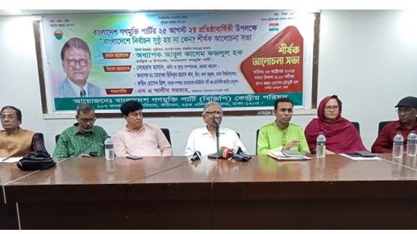 নিজস্ব প্রতিবেদকঃ বাংলাদেশ গণমুক্তি পার্টির ২য় প্রতিষ্ঠাবার্ষিকী উপলক্ষে জাতীয় প্রেসক্লাবের জহুর হোসেন চৌধুরী হলে ২৫ অক্টোবর, শুক্রবার বিকাল ৪ ঘটিকায় বাংলাদেশে নির্বাচন সুষ্ঠু হয় না কেন? শীর্ষক আলোচনা সভা অনুষ্ঠিত