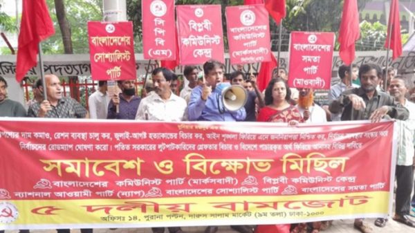 নিজস্ব প্রতিবেদকঃ আজ শনিবার ১৯ অক্টোবর ২০২৪ নিত্য প্রয়োজনীয় দ্রব্যের মূল্য কমানো ও পাচারকৃত টাকা ফেরত আনার দাবিতে ৫ দলীয় বাম জোটের এক সমাবেশ ও বিক্ষোভ মিছিল অনুষ্ঠিত হয়। নিত্যপ্রয়োজনীয়