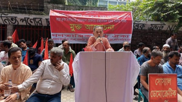 নিজস্ব প্রতিবেদকঃ গণতান্ত্রিক বাম ঐক্যের উদ্যোগে ১৫ অক্টোবর ২০২৪ মঙ্গলবার, সকাল ১১ টায় জাতীয় প্রেসক্লাবের সামনে “অন্তর্বর্তীকালীন সরকার অনির্দিষ্ট কালের জন্য নয়, সংস্কার কাজ নির্ধারিত সময়ে শেষ করে দ্রুত নির্বাচনের