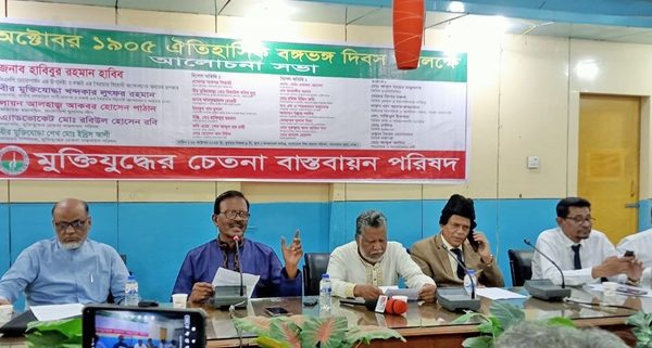 নিজস্ব প্রতিবেদকঃ মুক্তিযুদ্ধের চেতনা বাস্তবায়ন পরিষদ এর উদ্যোগে ঐতিহাসিক বঙ্গভঙ্গ দিবস উপলক্ষে ১৬ অক্টোবর বিকালে বাংলাদেশ শিশু কল্যাণ পরিষদ এর কনফারেন্স লাউঞ্জে আলোচনা সভা অনুষ্ঠিত হয়। অনুষ্ঠানে প্রধান অতিথি হিসেবে