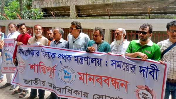 নিজস্ব প্রতিবেদকঃ অবিলম্বে মানবাধিকার বিষয়ক পৃথক মন্ত্রণালয় দাবি করেছেন জাতীয় মানবাধিকার সোসাইটির চেয়ারম্যান কবি ও সমাজবিজ্ঞানী মু. নজরুল ইসলাম তামিজী। ১৭ আগস্ট ২০২৪ শনিবার বেলা ১১টায় জাতীয় প্রেসক্লাবে এক শান্তিপূর্ন