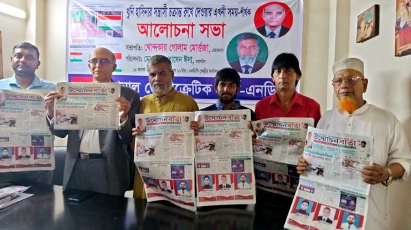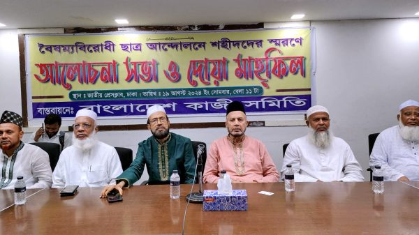 নিজস্ব প্রতিবেদকঃ বাংলাদেশ কাজী সমিতির উদ্যোগে বৈষম্যবিরোধী ছাত্র আন্দোলনে শহীদদের স্মরণে সমিতির সভাপতি মাওলানা মোহাম্মদ রুহুল আমিনের সভাপতিত্বে ১৯ আগস্ট সোমবার সকালে জাতীয় প্রেসক্লাবের জহুর হোসেন চৌধুরী মিলনায়তনে আলোচনা সভা
