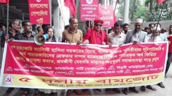নিজস্ব প্রতিবেদকঃ আজ ১৭ ই আগস্ট শনিবার বিকালে জাতীয় প্রেসক্লাবের সামনে ফ্যাসিস্ট খুনি হাসিনা সরকারের বিচার, ব্যাংক ডাকাত দুর্নীতিবাজ লুটপাটকারীদের গ্রেফতার, সম্পদ বাজেয়াপ্ত, বিদেশে পাচারকৃত অর্থ ফিরিয়ে আনা, দ্রব্যমূল্য কমানো