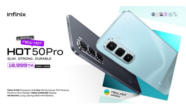 নিজস্ব প্রতিবেদকঃ তরুণদের পছন্দের প্রযুক্তি ব্র্যান্ড ইনফিনিক্স বাংলাদেশে তাদের হট ৫০ সিরিজের নতুন ফোন ‘ইনফিনিক্স হট ৫০ প্রো’ উন্মোচন করেছে। প্রিমিয়াম ডিজাইনের এই ডিভাইসটি দেখতে স্লিম ও টেকসই। হট সিরিজের নতুন এই ফোনে