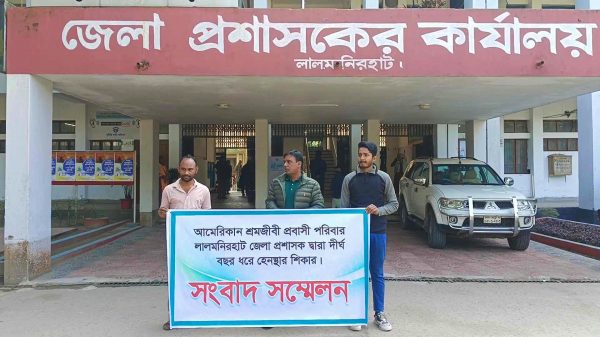 লালমনিরহাট প্রতিনিধিঃ দীর্ঘ ১০ বছরেরও অধিক সময় ধরে জমি সংক্রান্ত বিষয়ে আমেরিকা প্রবাসী পরিবার লালমনিরহাট জেলা প্রশাসক কর্তৃক হেনস্তার শিকার হচ্ছে বলে অভিযোগ তুলে লালমনিরহাট জেলা প্রশাসকের কার্যালয়ের সামনে সংবাদ সম্মেলন