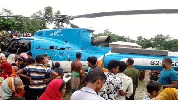 স্টাফ রিপোটারঃ দুর্যোগপূর্ণ আবহাওয়ার কারণে গাইবান্ধায় হঠাৎ করে একটি হেলিকপ্টার অবতরণ করেছে। ঢাকা থেকে রোগী নিয়ে আসা হেলিকপ্টারটি রংপুরের দিকে যাচ্ছিল। গাইবান্ধা সদর উপজেলার বল্লমঝাড় ইউনিয়নের খোলাবাড়ি এলাকায় বৃহস্পতিবার বিকেলে