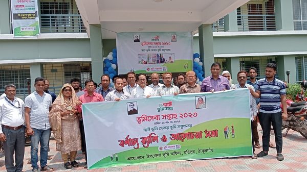 হরিপুর (ঠাকুরগাঁও) প্রতিনিধিঃ ঠাকুরগাঁওয়ের হরিপুর উপজেলা ভূমি অফিসের হলরুমে অশোক মন্ডলের পরিচালনায় নির্বাহী অফিসারের সভাপতিত্বে ভূমি সেবা সপ্তাহ সম্পন্ন হয়েছে আয়োজনে ভূমি অফিস। উক্ত সভায় প্রধান অতিথি হিসাবে উপস্থিত ছিলেন