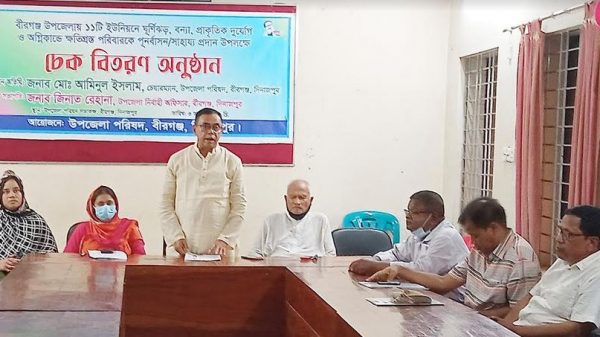 দিনাজপুর প্রতিনিধি – দিনাজপুরের বীরগঞ্জ উপজেলার ১১টি ইউনিয়নে ঘূর্ণিঝড়, বন্যা, প্রাকৃতিক দুর্যোগ ও অগ্নিকান্ডে ক্ষতিগ্রস্ত পরিবারকে পূনর্বাসন/সাহায্য প্রদান উপলক্ষে ২৬ পরিবারের মাঝে চেক বিতরণ করা হয়েছে।৩ আগষ্ট বুধবার দুপুরে উপজেলা