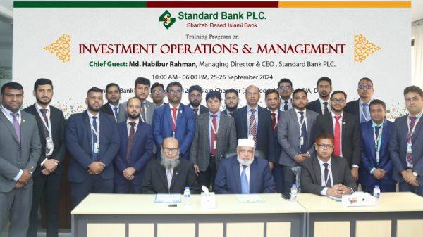 নিজস্ব প্রতিবেদকঃ ব্যাংকিং জ্ঞান ও দক্ষতা বৃদ্ধির লক্ষ্যে প্রধান কার্যালয় ও শাখার নির্বাচিত কর্মকর্তাদের অংশগ্রহণে দুই দিনব্যাপী বিনিয়োগ বিষয়ক প্রশিক্ষণের আয়োজন করেছে শরি‘আহ্ধসঢ়; ভিত্তিক স্ট্যান্ডার্ড ব্যাংক পিএলসি.। ২৫ সেপ্টেম্বর ২০২৪