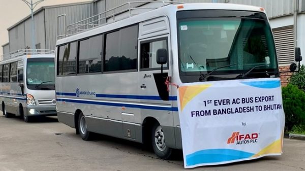 প্রথমবারের মতো বাস রপ্তানি শুরু করেছে বাংলাদেশের অটোমোবাইল খাতের প্রতিষ্ঠান ইফাদ অটোস লিমিটেড। চলতি সপ্তাহে এ ঐতিহাসিক রপ্তানী কার্যক্রম শুরু হয়েছে। প্রাথমিক চালানে ১১ টি এসি বাস ভুটানে রপ্তানী করা