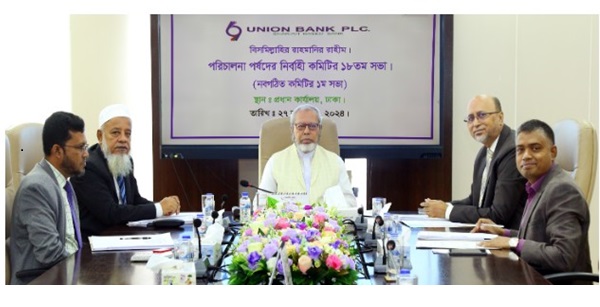 নিজস্ব প্রতিবেদকঃ ২৭ অক্টোবর, ২০২৪ তারিখে ইউনিয়ন ব্যাংক পিএলসি-এর প্রধান কার্যালয়, গুলশান- ১, ঢাকায় ইউনিয়ন ব্যাংকের নবগঠিত নির্বাহী কমিটির ১ম সভা অনুষ্ঠিত হয়। সভায় সভাপতিত্ব করেন ইউনিয়ন ব্যাংক পিএলসি. এর