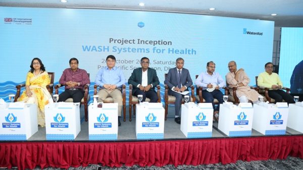 নিজস্ব প্রতিবেদকঃ ২৬ অক্টোবর ২০২৪, শনিবার, রাজধানীর প্যান প্যাসিফিক সোনারগাঁওয়ে “ওয়াশ সিস্টেম ফর হেলথ” প্রকল্পের একটি সূচনা কর্মশালা আয়োজন করে উন্নয়ন সংস্থা ওয়াটার এইড। কর্মশালায় প্রধান অতিথি হিসেবে উপস্থিত ছিলেন