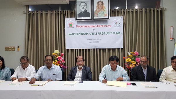 চুক্তি স্বাক্ষর অনুষ্ঠানে গ্রামীণ ব্যাংকের চেয়ারম্যান প্রফেসর ডঃ এ কে এম সাইফুল মজিদ, ব্যবস্থাপনা পরিচালক মোঃ আবদুর রহিম খান, এইমস অব বাংলাদেশ লিমিটেডের সিইও ও ব্যবস্থাপনা পরিচালক ইয়াওয়ার সায়ীদ, পরিচালক