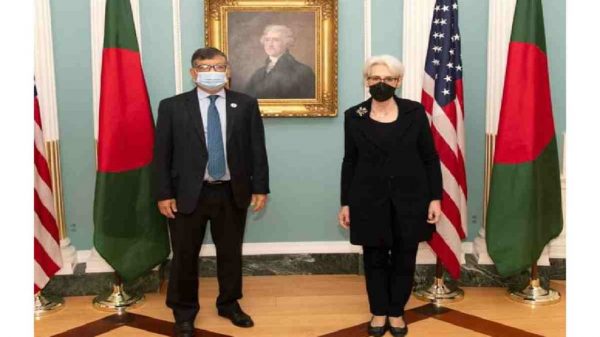ইন্দো-প্যাসিফিক অঞ্চলে নিরাপত্তা ও সমৃদ্ধির উন্নয়নে পদক্ষেপ নিয়ে আলোচনা করেছে বাংলাদেশ ও যুক্তরাষ্ট্র।বৃহস্পতিবার মার্কিন ডেপুটি সেক্রেটারি অব স্টেট ওয়েন্ডি শেরম্যান পররাষ্ট্র সচিব মাসুদ বিন মোমেনের সঙ্গে বৈঠক করেন এবং দ্বিপক্ষীয়